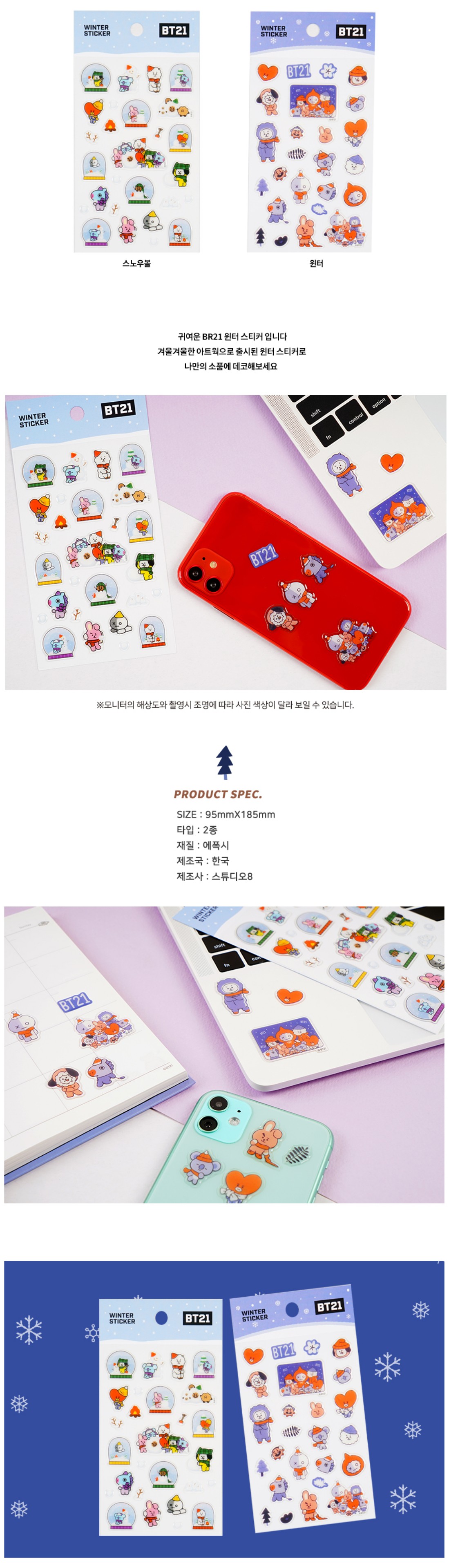 Zimowe naklejki BT21 w wersji SNOW BALL (po lewej).